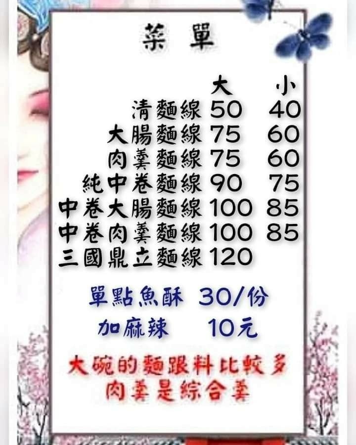 菜單種類算是單純,主要就是麵線加上大腸、肉羹、中卷、還有淡水魚酥可以選唷~